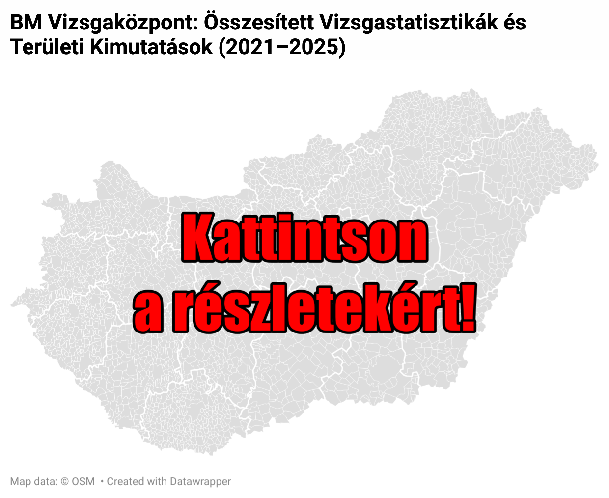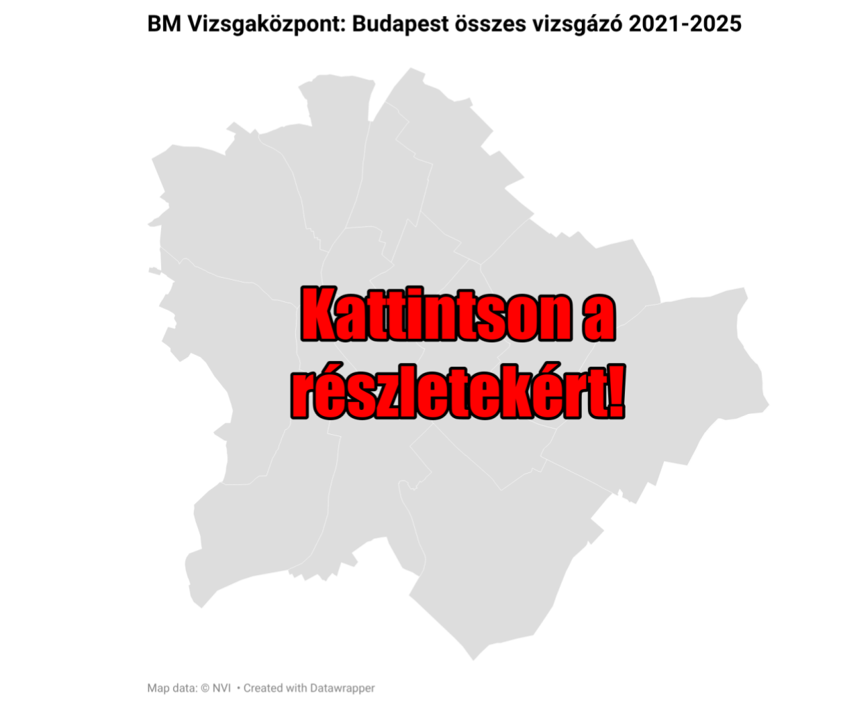 Országos és budapesti adatok a vizsgázók bejelentett lakóhelyének irányítószáma alapján.
